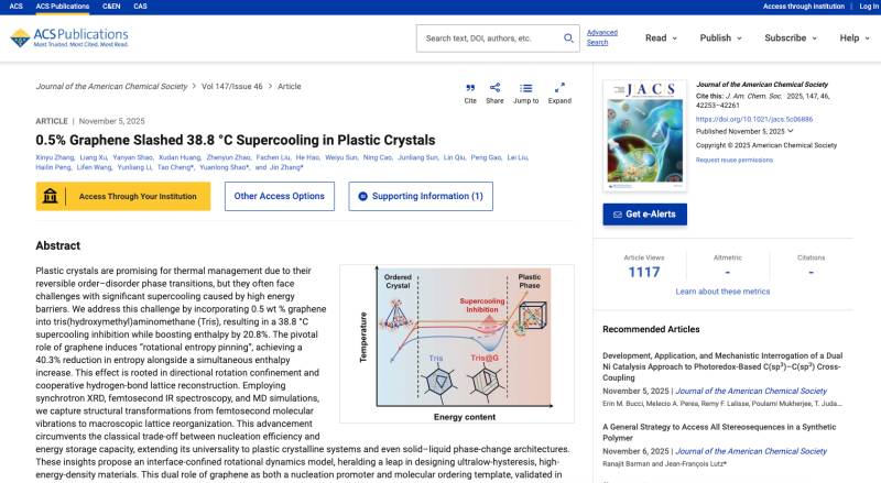 塑性晶体因其可逆的有序-无序相变特性,在热能管理领域展现出巨大的应用潜力,特别是在固态热能存储与调节方面具有显著优势。这类材料主要由可旋转的分子或离子组成,通过大范围的潜热吸收与释放来实现高效的热量管理。然而在实际应用中,塑性晶体普遍面临严重的过冷现象,这一瓶颈直接限制了储能系统在环境温度波动时及时