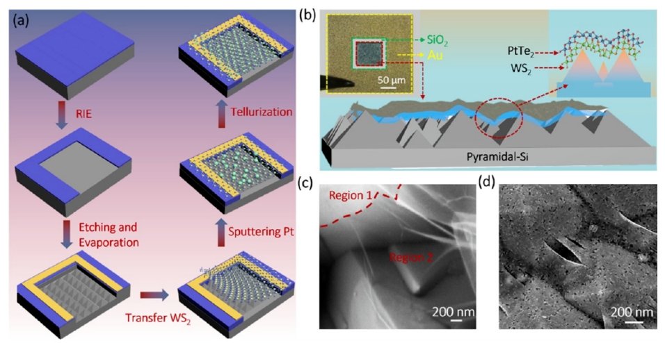 在当今的光电探测器领域,二维(2D)材料因其独特的物理和化学性质而备受关注。尤其是2D材料与硅(Si)结合形成的范德华(vdW)异质结,因其潜在的高性能光电特性而成为研究热点。然而,现有技术在实现这些异质结的精确图案化和大规模生产方面仍面临